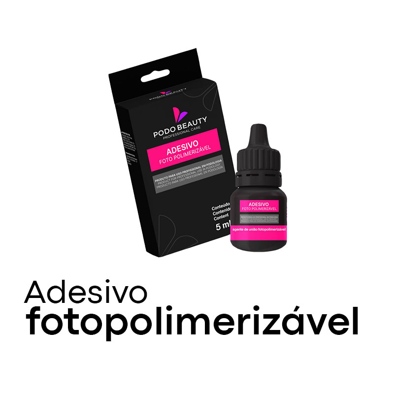 O Adesivo Fotopolomerizável é indicado para adesão de órteses ungueais em resina composta, cerâmicas e compósitos em lâminas ungueais.
